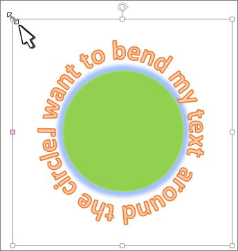Wrap around a circle   To create text that completely circles your shape, choose Circle under Follow Path, and then drag any of the sizing handles until your WordArt is the size and shape you want.