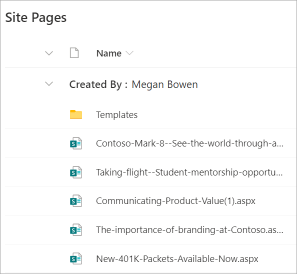 on the upper right, then select Site Contents. On the Site Contents page, select Site Pages. -