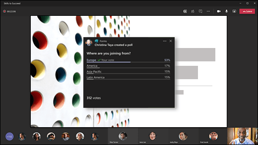 As a meeting organizer or presenter, you can use Microsoft Forms to create polls before your Microsoft Teams meeting, then launch them during it so attendees from any endpoint (mobile, web, desktop) can view and answer. You can even poll attendees before your meeting and collect information ahead of it.