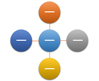 Use to show the relationship to a central idea. Emphasizes both information in the center circle and how information in the outer ring of circles contributes to the central idea. The first Level 1 line of text corresponds to the central circle, and its Level 2 text corresponds to the outer ring of circles. Unused text does not appear, but remains available if you switch layouts.