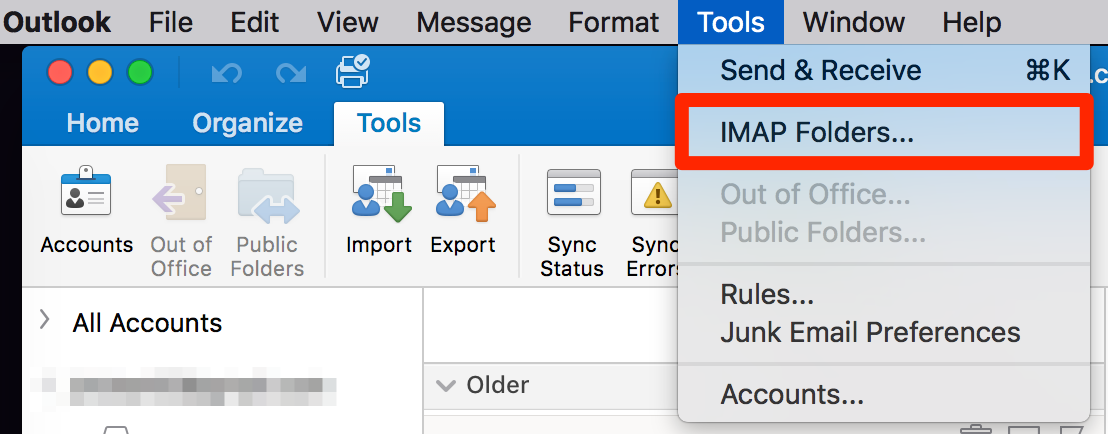 When you add an IMAP account to Outlook, you can select which folders from the account appear in the folder list. Folders that appear in Outlook are also called "subscribed" folders because those folders sync regularly with the mail server. If you have a large folder in the account that is used infrequently, you can unsubscribe from that folder. Unsubscribing from a folder removes it from the Outlook folder list and may improve the sync performance of the account.