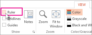 Tip: The ruler is not available in all views, such as Slide Sorter view. If the Ruler box is grayed out, try switching to Normal view.