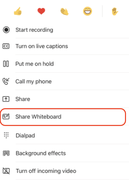 2. In the Whiteboard section, select Microsoft Whiteboard.