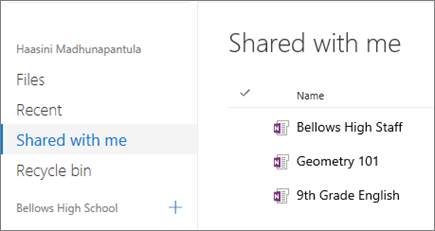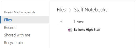 If the notebook has been shared with you, select Shared with me to view your Staff Notebooks.Â